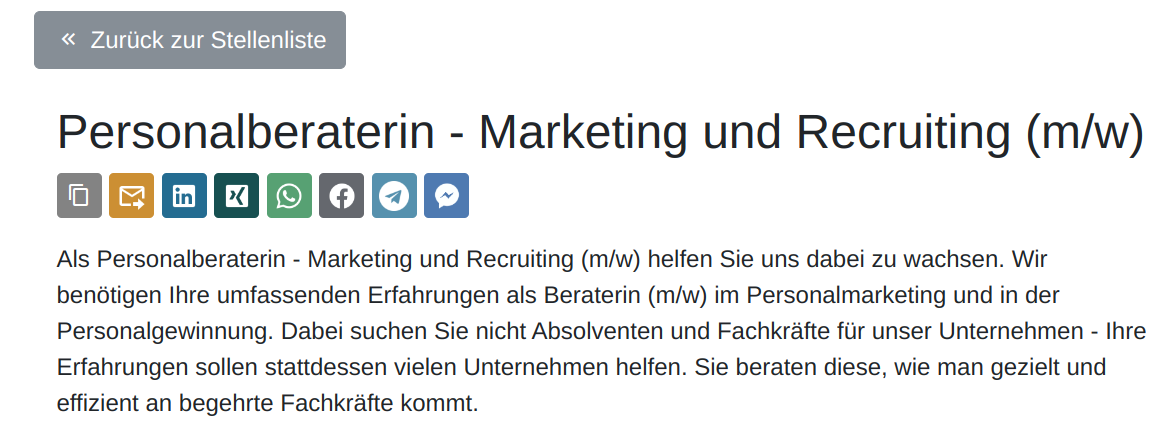 Unterhalb jeder Stelle gibt es nun eine Liste an Buttons, mit dem sich interessierte Bewerbende die Stelle "Teilen" können.
